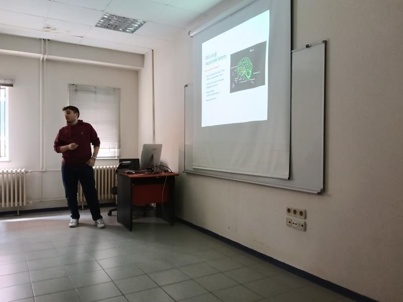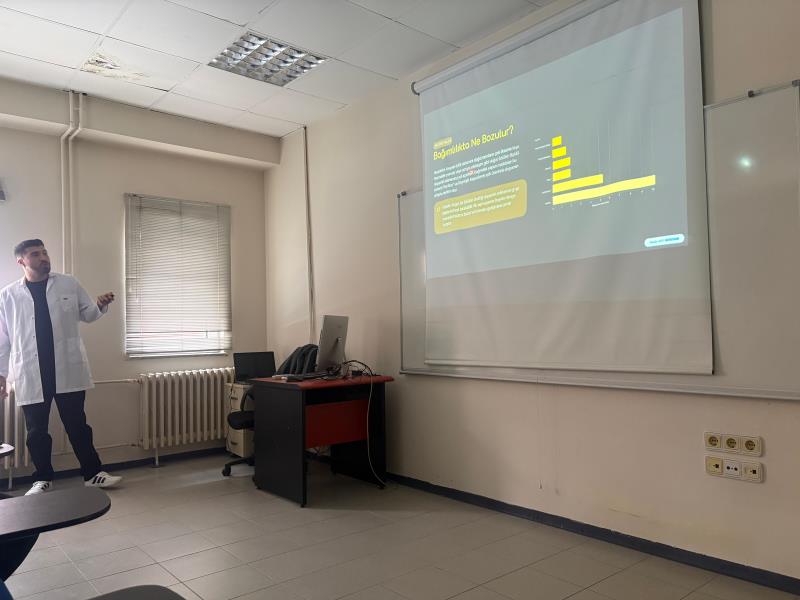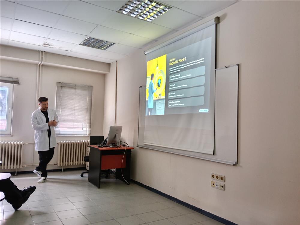 Merkez Müdürümüz Prof. Dr. Erol AYAZ rehberliğinde İŞKUR Gençlik Programı kapsamında Merkezimiz bünyesinde çalışan öğrenciler ile bölümlerine ilişkin seminerler dizisinin ilki 01.04.2026 tarihinde gerçekleştirilmiştir. İlk seminerde Üniversitemiz Tıp Fakültesi Dönem 3 öğrencilerinden Muhammet Samet YENER tarafından "Bağımlılığın Nörobiyolojik Yapısı" ve Ramazan Mert BAYKAL tarafından "Bağımlılığın Tedavisi" isimli sunumları gerçekleştirilmiştir. Sunumu gerçekleştiren, katılım sağlayan ve desteklerini esirgemeyen Deney Hayvanları Merkezi çalışanlarına teşekkür ederiz.